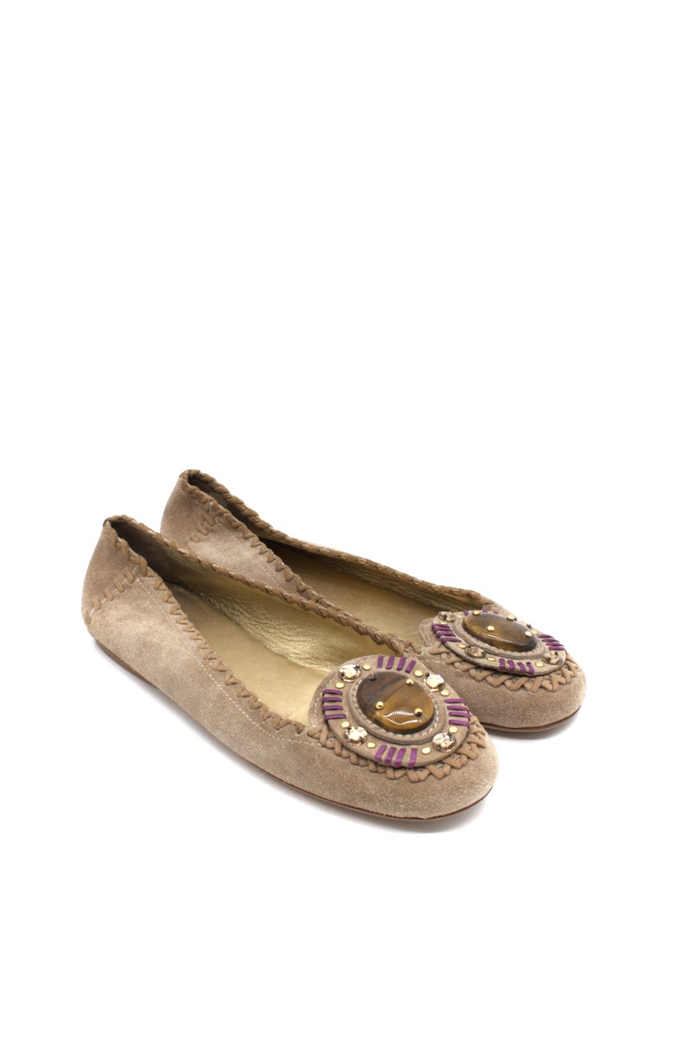 Manoletinas con piedra marrón en empeine y otros avalorios